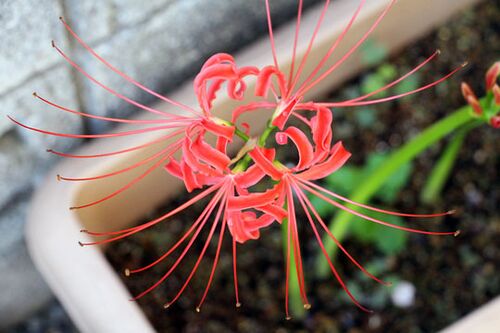 鉢植え彼岸花の観察日記,今年38週目.昨年と同じ9月19日,最初の花が開花しました. #園芸 #ヒガンバナ #彼岸花